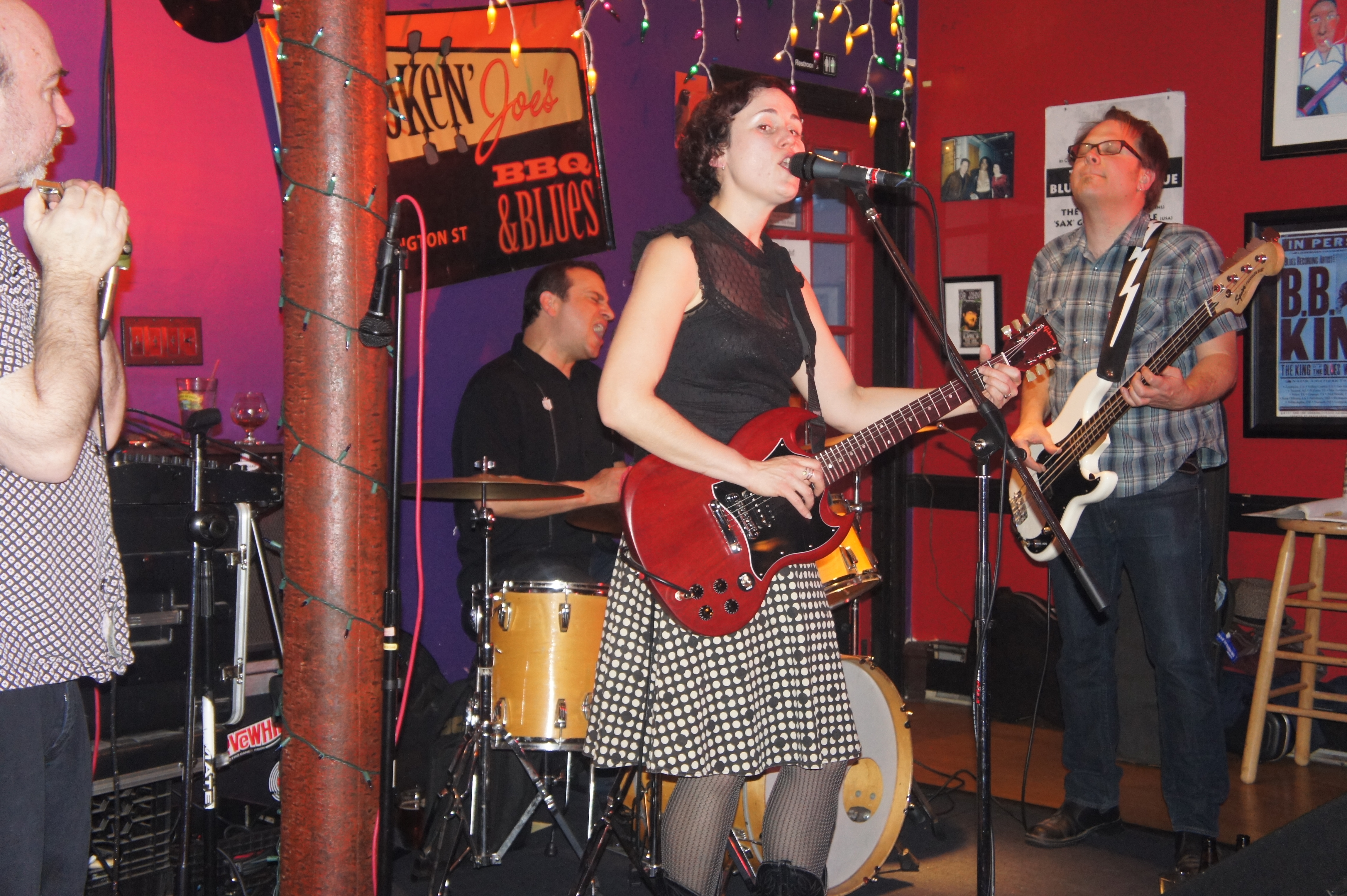 Erin Harpe And The Delta Swingers recently competed in the International Blues Competition in Memphis, and they just got back from a gig at South By Southwest Music Conference And Festival in Austin. Harpe and her Delta Swingers are a Boston-based blues band who play authentic renditions of the old time sounding vintage blues from the 1920 and the 1930s. Their show last night at Boston’s Smoken’ Joe’s BBQ and Blues found them in top form.