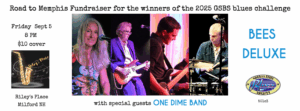 September 5: Bees Deluxe, One Dime Band; Road To Memphis fundraiser; Riley’s Place; Milford, New Hampshire.
